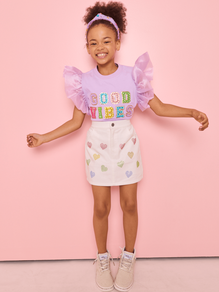 Rainbow Crystal Hearts Denim Skirt